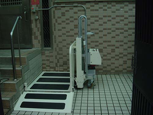 安全裝置安全翹板:設備運行上升時翹板自動翹起,防止輪椅滑出平臺。
