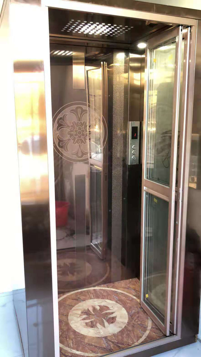 曳引家用電梯或別墅電梯:井道及地坑、轎廂、層站部分;主要部件:曳引系統、導向系統、門系統、轎廂、重量平衡系統、電器控制系統、安全保護系統,電氣方面的安全保護在電梯的各個運行環節都有,這種電梯同小區電梯相同。安靜平穩、價格經濟、乘坐舒適,方便殘疾人和老年人使用的家居電梯。