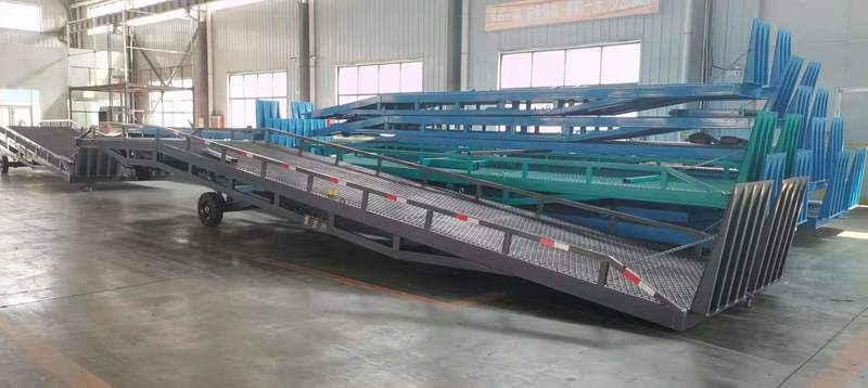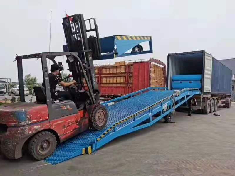 移動式登車橋在現代物流現場已是一非常易見的結構形式,它是企業物流鏈的起點與終點,是企業快速、安全周轉產品及貨物的一個裝卸貨操作平臺。 裝卸貨操作平臺的高度固定,但來往運輸車廂的廂地高度不一,運輸車輛與裝卸貨站臺之間總是形成一定的高度落差或間隙。造成搬運叉車不能進出運輸車輛直接裝卸貨物。運用登車橋提供可靠的連接。使搬運叉車能夠安全、快速地進出運輸車輛進行裝卸貨作業。使用過程平穩可靠,安全性能高,裝卸貨物時節約了大量時間,省卻了大量人力,使裝卸貨物大大的提高了效率。臺面采用特制的菱形網格板有可靠的強度,能保證長期使用而不變形。它的菱形網狀結構,充分保證了防滑性能,使叉車有更好的爬坡性和可操縱性,即使在雨、雪天氣,仍能保證正常使用。