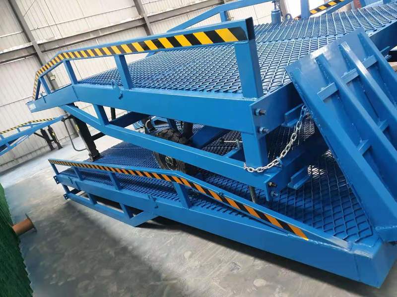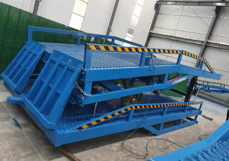 移動液壓登車橋是實現貨物快速裝卸的專用輔助設備,它的高度調節功能使貨車與庫房的貨臺之間架起一座橋梁,叉車等搬運車輛通過它能直接駛入貨車內部進行貨物的批量裝卸,僅需單人作業,即可實現貨物的快速裝卸。移動液壓登車橋使企業減少大量勞力,提高工作效率,獲取好的經濟效益。臺面均設計為網格狀鋼板,這種結構能保證具有很好的強度,又具有防滑功能,還能方便地清掃工作臺面,使它能經常地保持清潔、美觀。移動液壓登車橋無須外接電源,通過手搖泵做動力能輕松地在其整個調整范圍內按50mm的倍數進行高度的調整,可以充分適應各種不同高度的貨車。
